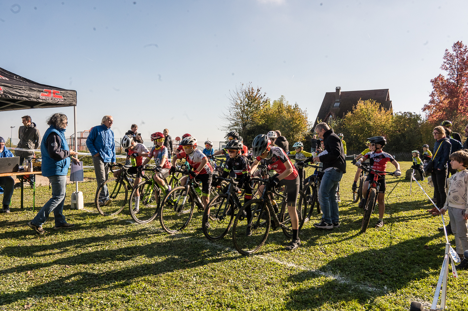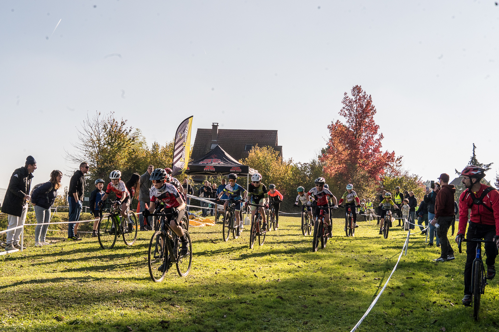 Samedi 18 octobre a eu lieu notre 11e cyclo-cross, avec la participation de 26 jeunes du club ! Le village a été installé dans le brouillard, mais on avait réservé le soleil, il est arrivé à l'heure pour les premières courses des jeunes !