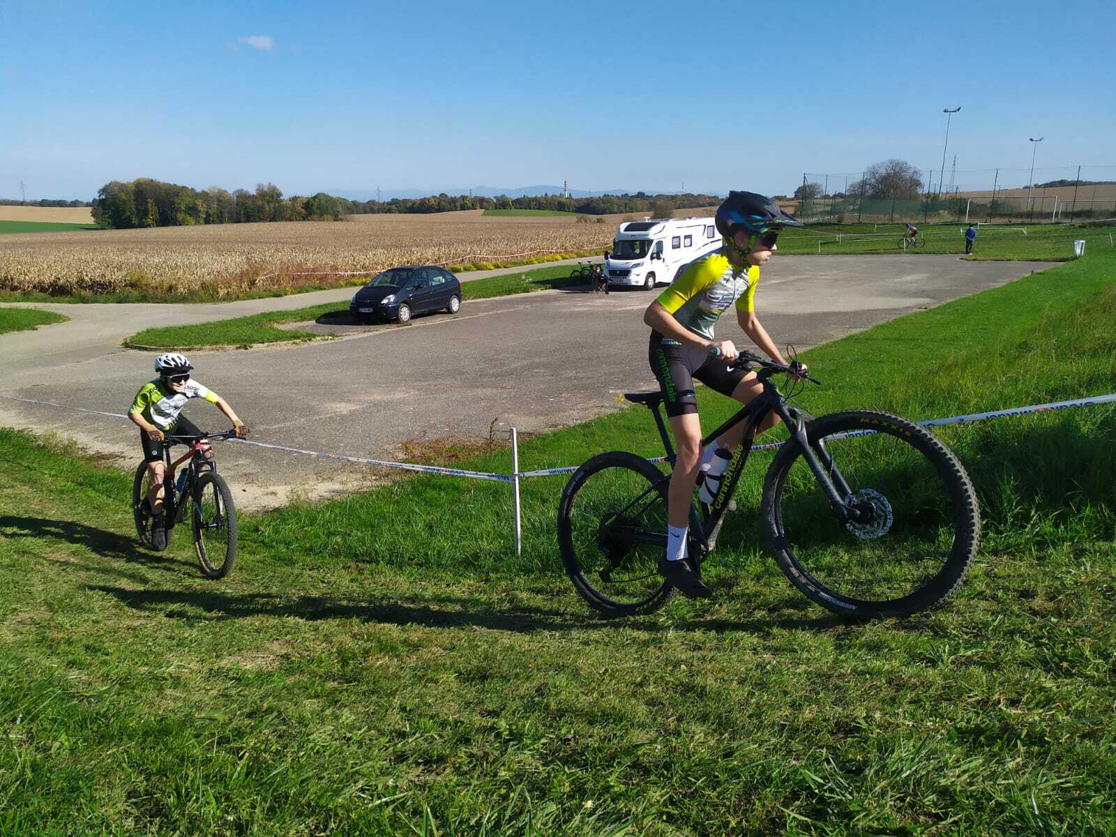 Samedi 18 octobre a eu lieu notre 11e cyclo-cross, avec la participation de 26 jeunes du club ! Le village a été installé dans le brouillard, mais on avait réservé le soleil, il est arrivé à l'heure pour les premières courses des jeunes !